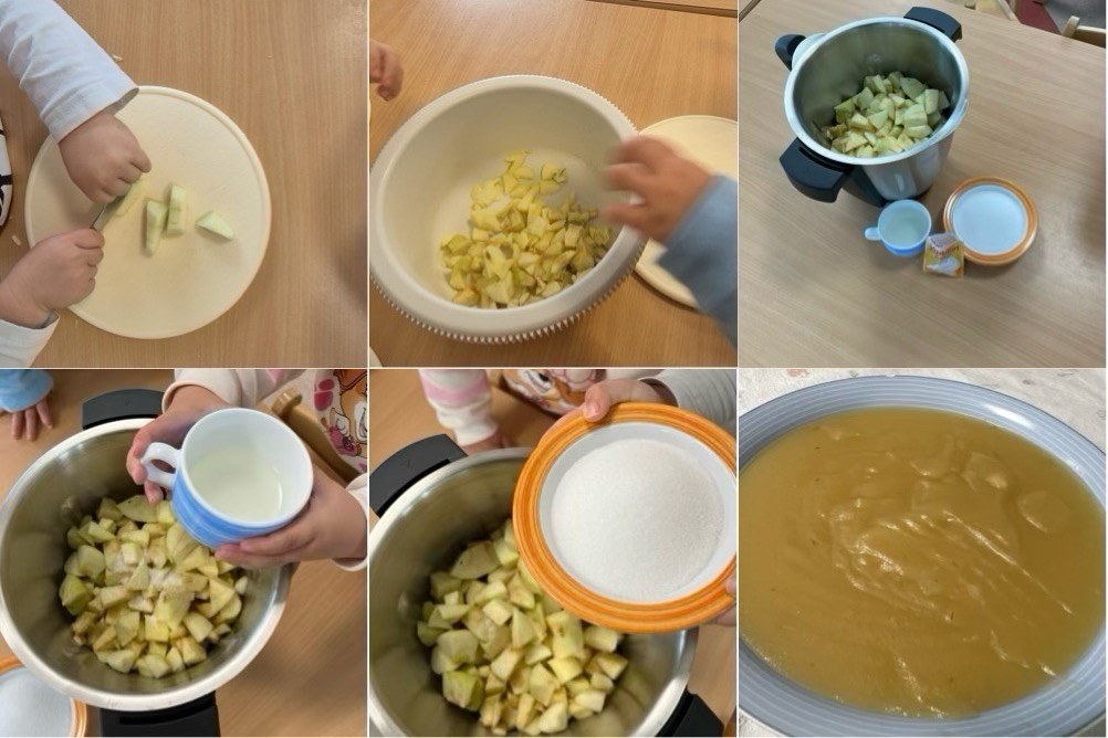 Aus den Stücken haben wir gemeinsam leckeres Apfelmus gekocht. Mmmh, das hat gut gerochen und geschmeckt!