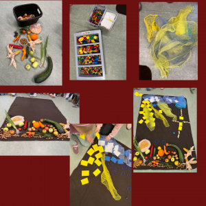 - Zum Schluss erzählen wir, was wir gelernt haben: Wie sich harte und weiche Oberflächen anfühlen, wie viele Kastanien wir aufgefädelt haben.