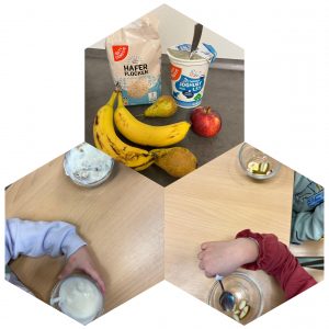 Heute bereiten wir ein gesundes Frühstück zu – mit Obst, Joghurt und Haferflocken. Es ist nicht nur lecker, sondern auch spannend, denn wir können dabei richtig gut forschen und ausprobieren!Zuerst schauen wir uns das Obst genau an: