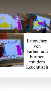 ✨ Am Lichtertisch wird’s spannend: Die Kinder erforschen Farben und Formen – mal mit buntem Transparentmaterial, mal mit dem Steckbrett. Sehen, staunen, entdecken! 💡🎨