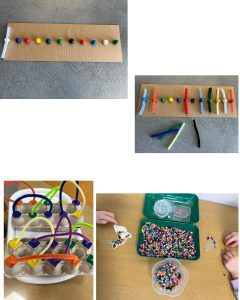 - Zum Schluss erzählen wir, was wir gelernt haben: Wie sich harte und weiche Oberflächen anfühlen, wie viele Kastanien wir aufgefädelt haben.